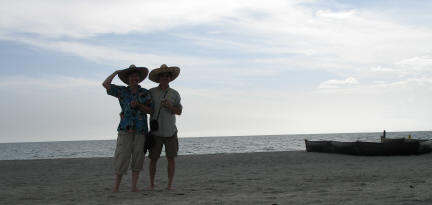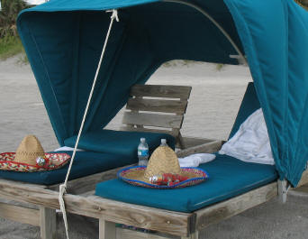 ![]() K&K relax on covered lounge chairs and the Mexican hats Dad & MaryAnne gave to Bob and Amy |