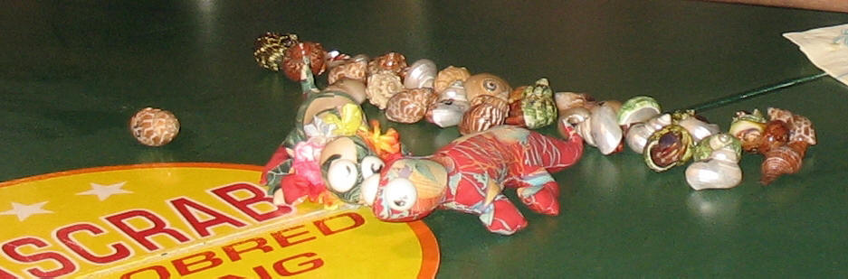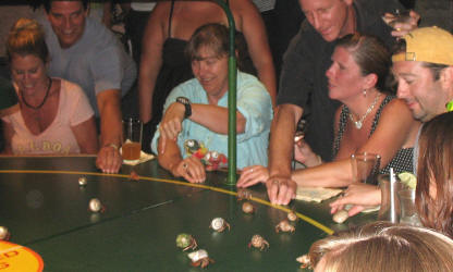 Kazoos were handed out to encourage the crabs prior to setting them free to run. Bob loved that ... for days afterwards. Our crab won one of the first races and got to race in the final heat. Unfortunately, he didn't win that one. |