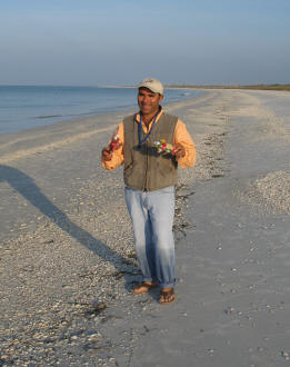 ![]() In the fading light Bob is gathering the last shells on our trip |