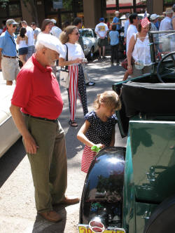It was a family reunion too. The three kids (Cooper, Amy, and Jennifer), their families (Jessica - Coop's wife, Nathan and Rachel - Coop's kids; Scott - Jen's husband; and of course Bob), and Dad's sister, Doris, her husband King, and grandchild, Amber, were there too. MaryAnne, Dad's wife, was an awesome hostess for all of us! Dad took his Model A Ford he restored to the antique car show. Rachel and Nathan, spent a lot of time entertaining themselves polishing the car after people left their fingerprints on it! |