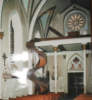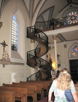 The stairs were built with no external supports and made two full 360 degree rotations. Later rails were added for the nuns' safety. The full story - the lore and modern explanation is accessible at Snopes.com. Although we tend toward believing the nun's story (the world needs faith), it is up to the reader to decide if he or she believes in the miraculous rendition of the story or the current, but very left-brained version. |